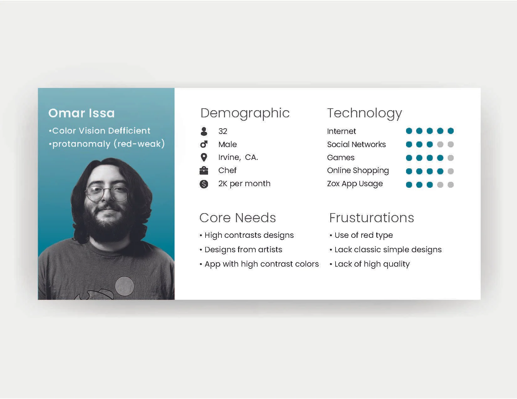 Zox is a sock brand that partners with artists to create unique, high-quality designs. I led the conceptual design of a brand kit and accessible shopping app, filling a market gap for visually inclusive shopping that supports individuals with color blindness and visual impairments.